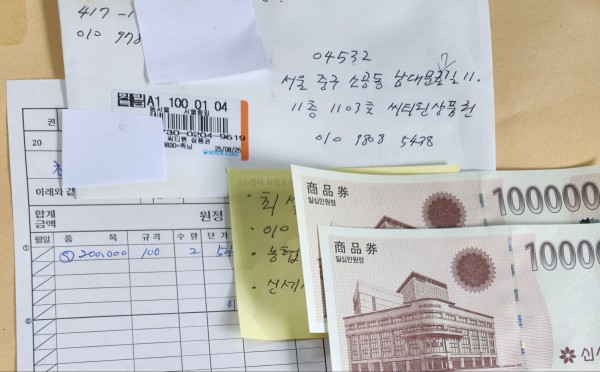 창원시 진해구 석동로 고객님 신세계백화점 상품권 우편 인수 완료
