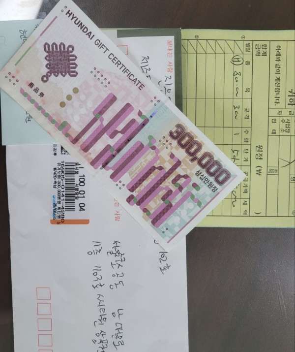 우체국을 통해 현대백화점 상품권 30만원을 보내주셨습니다.