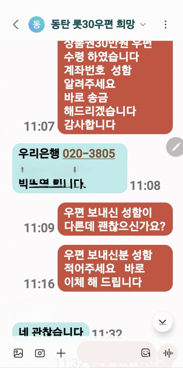 경기도 동탄에서 롯데 백화점 상품권 우편 도착하여 이체 완료 해드렸습니다.