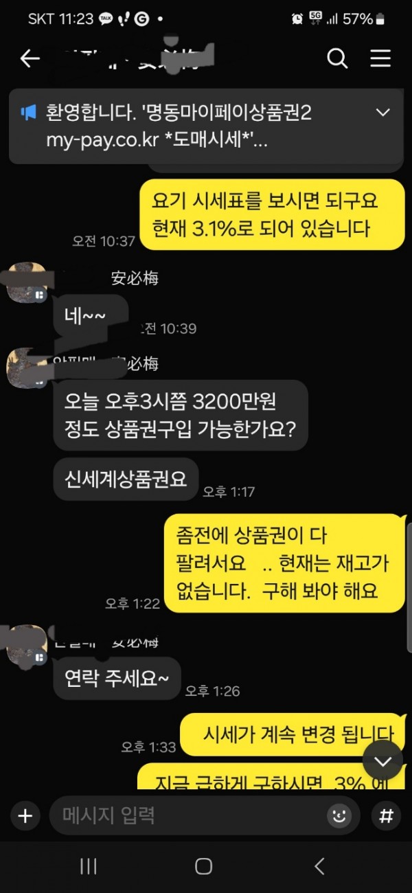 명동마이페이상품권 010-9808-5438 카톡 문자