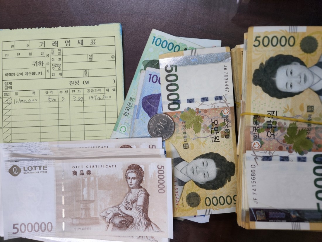 총 1,550만 원 상당의 롯데백화점 상품권을 구매해 가셨고요.
