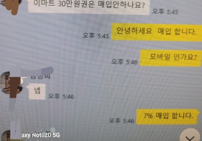 카카오톡으로 선물 받은 이마트 상품권 처분