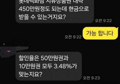 결혼예물 사려고 롯데상품권 650만원 샀어요