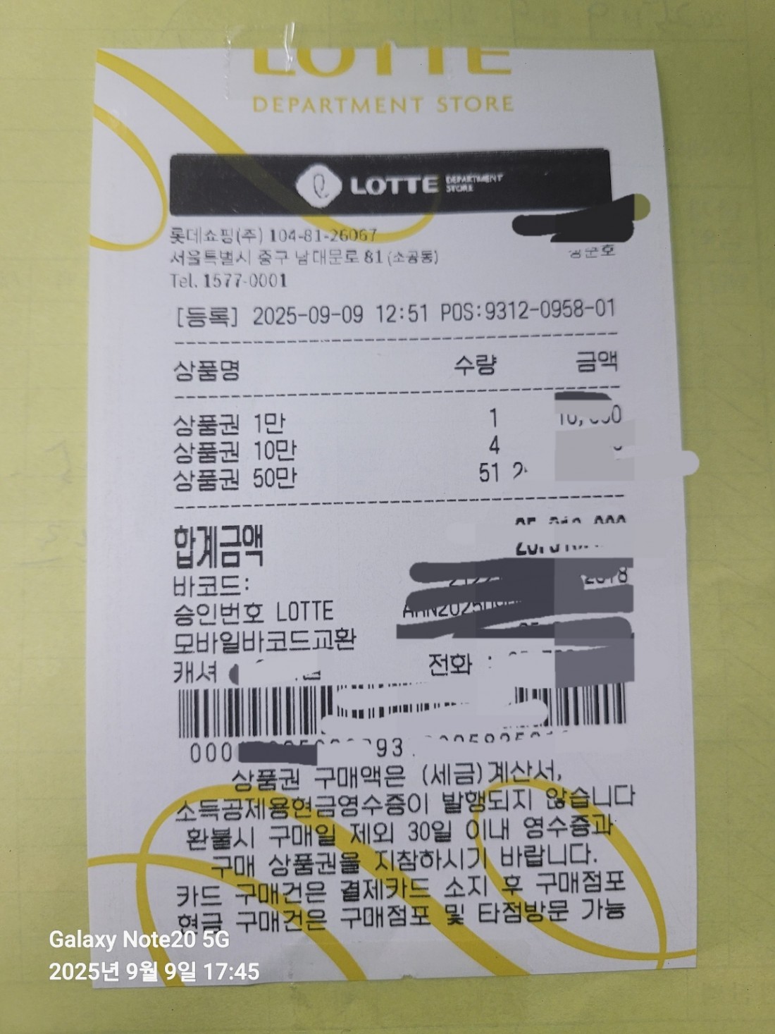 롯데모바일 상품권 도매 구입 완료