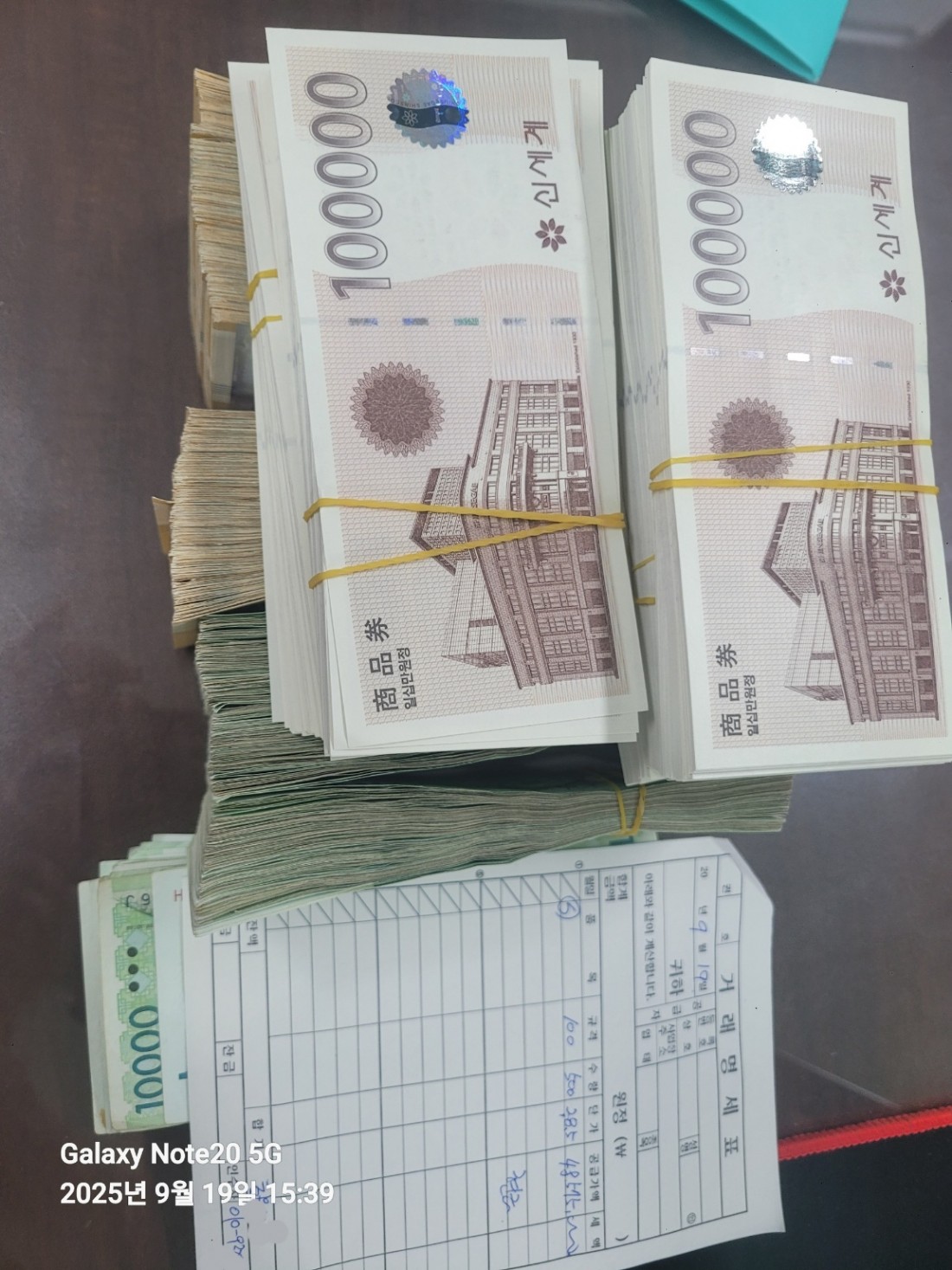 전주에서 일부러 올라오셔서 신세계상품권 5천만 원을 구매해 가셨습니다.