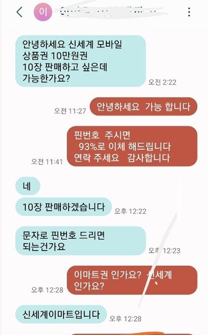 신세계(이마트)백화점 모바일 상품권 판매 후기