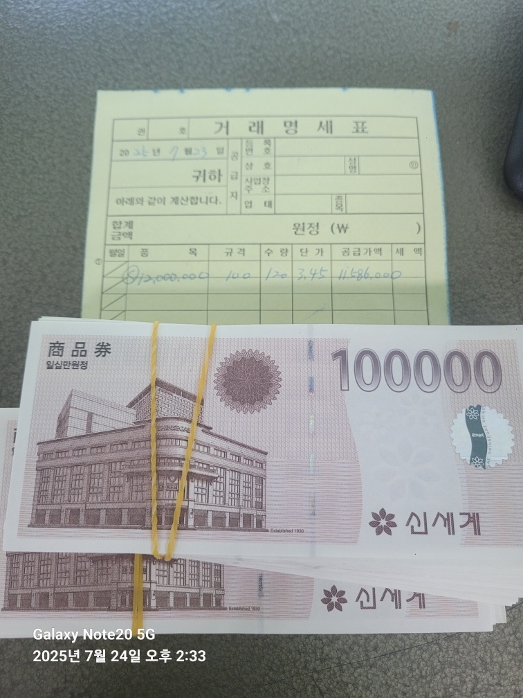 신세계 백화점 상품권 10만 원권 120장을