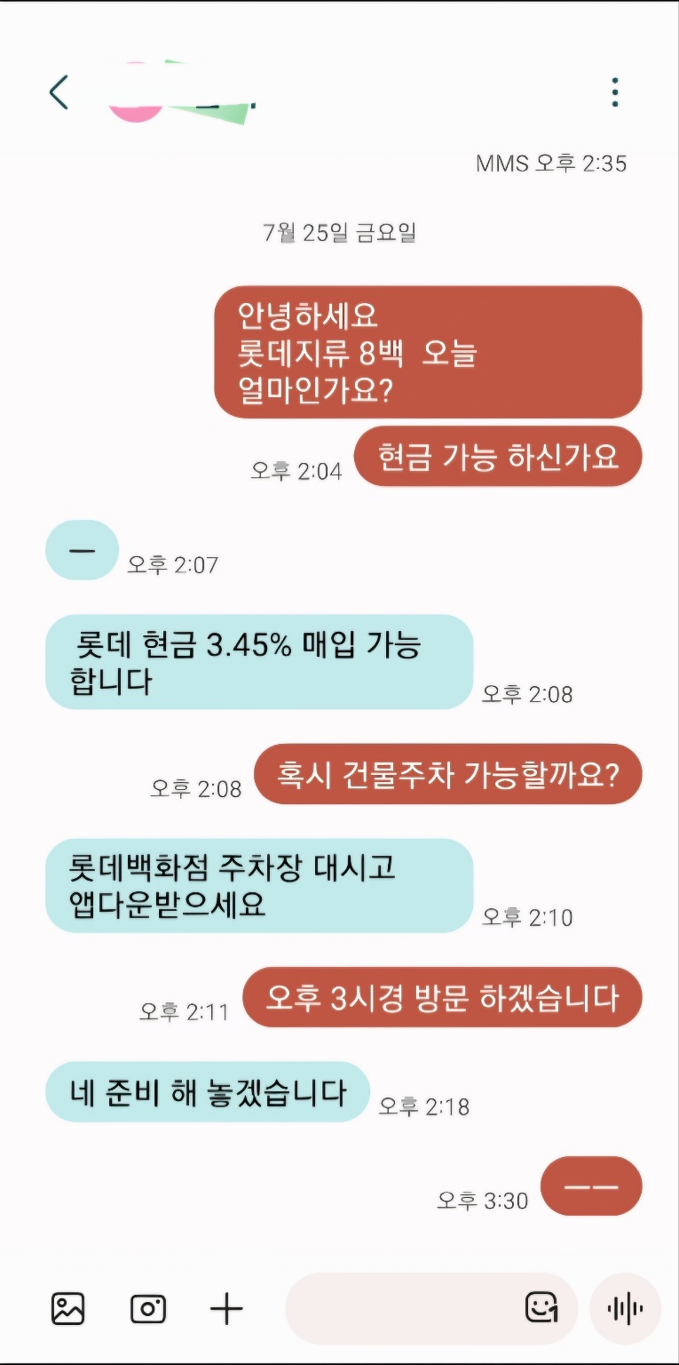 롯데 지류 800 직접 방문해서 바로 현금 받았습니다