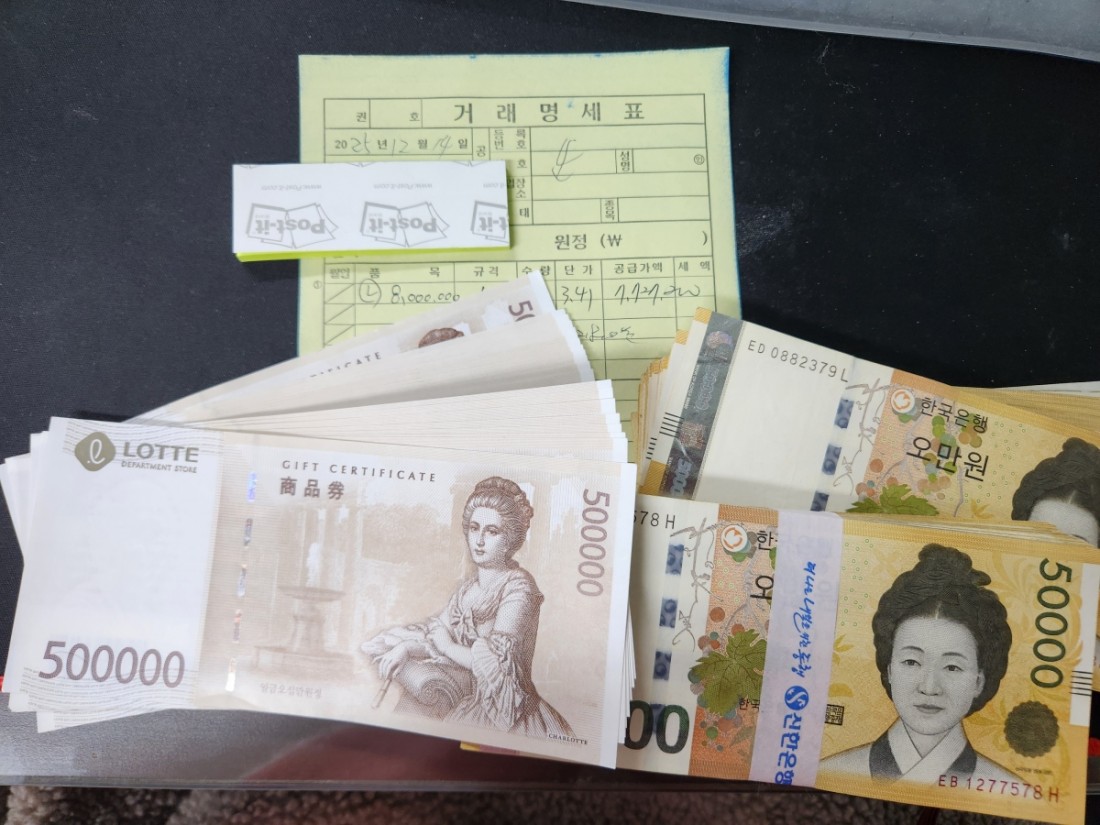롯데상품권 800만원을 확인 후 전달해드렸고,